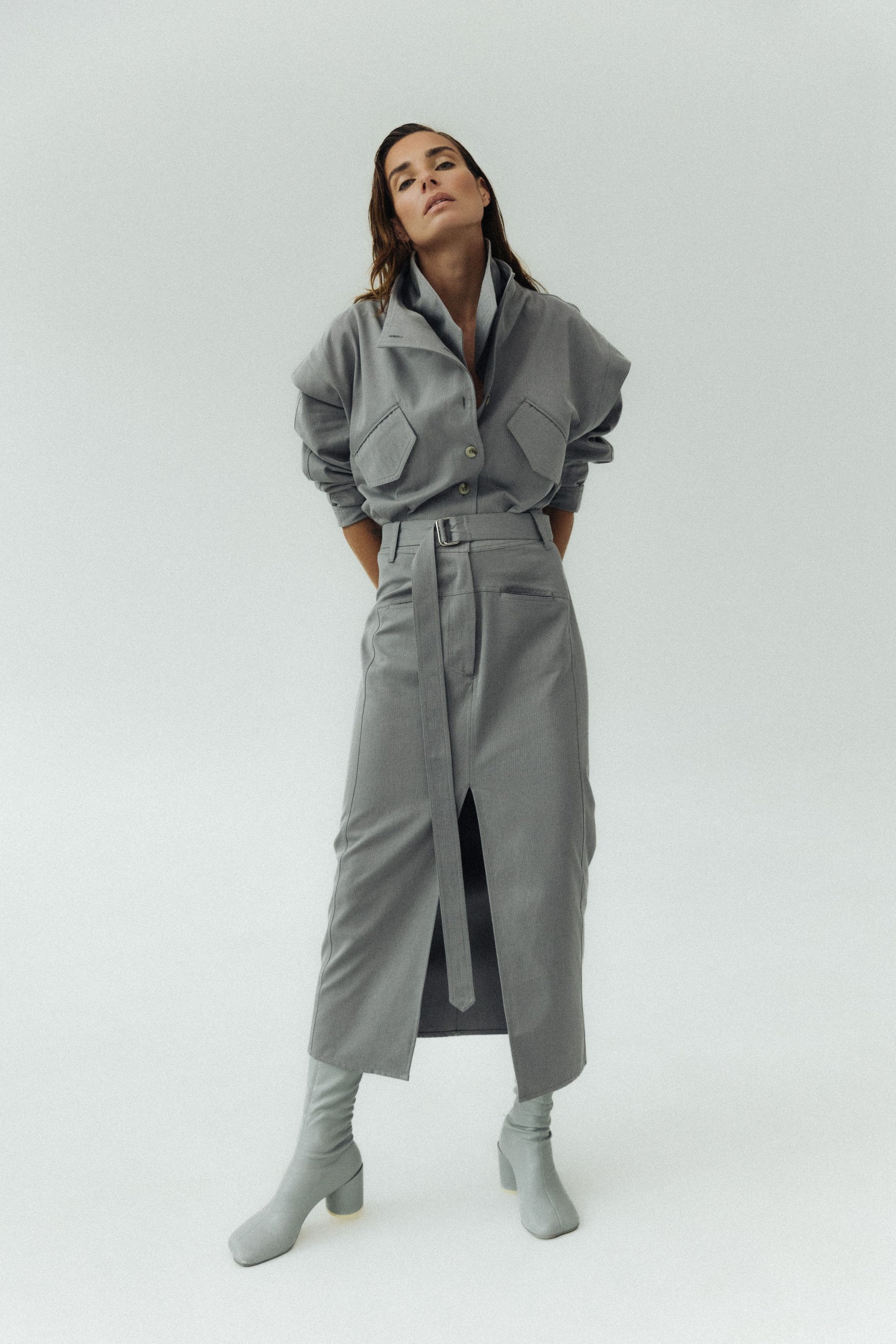 MINA suknja je jednostavna, ali nikad obična — ključni komad modernog minimalizma koji se kombinuje s AISURU jaknom ili nosi samostalno.