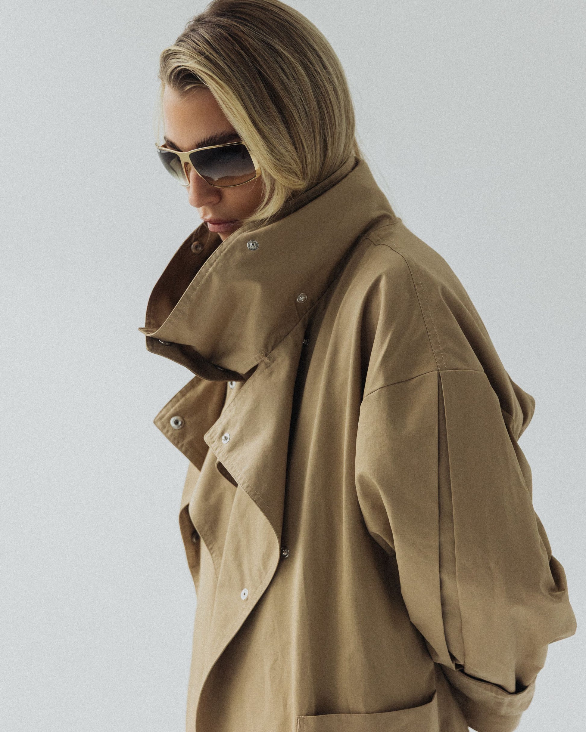 Modeli na fotografijama nose Moani mantil uz Kalani jaknu iz iste kolekcije. Komadi se prodaju odvojeno.