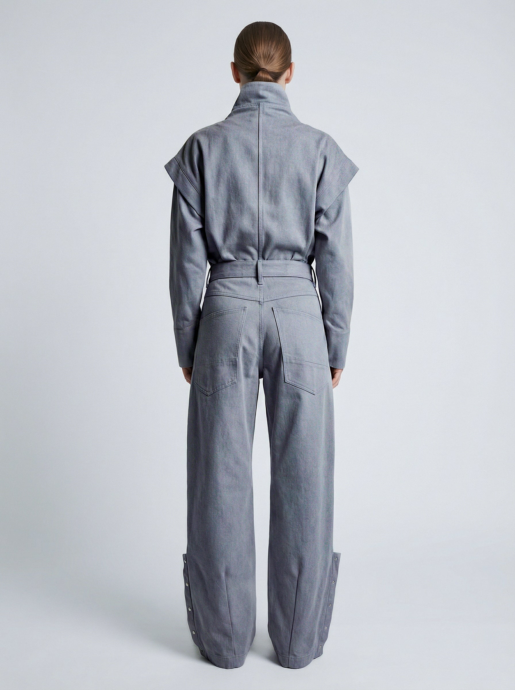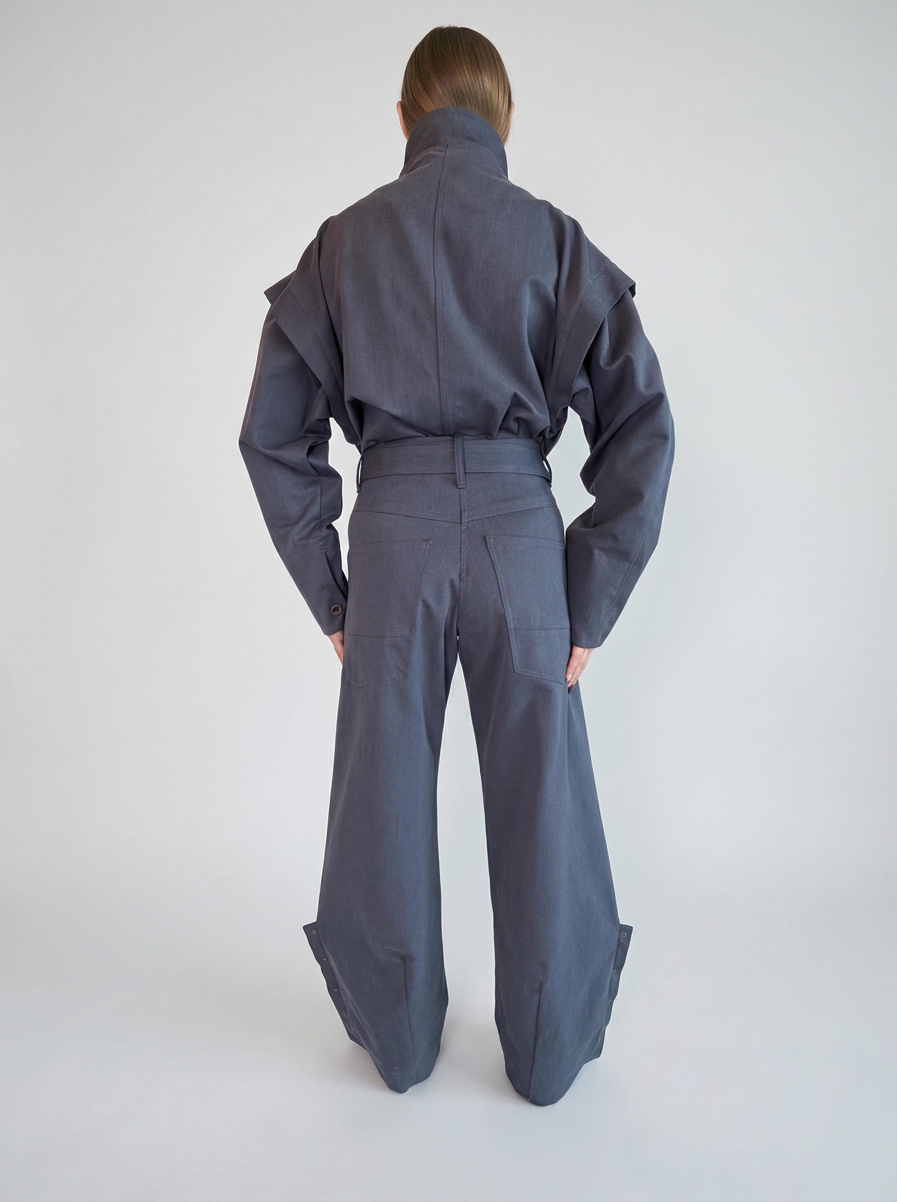 Rei pantalone funkcionišu jednako snažno u kompletu sa Aisuru jaknom ili kao samostalan statement komad. Namenjene su ženama koje žele jasnoću u silueti i mir u sopstvenom izboru.