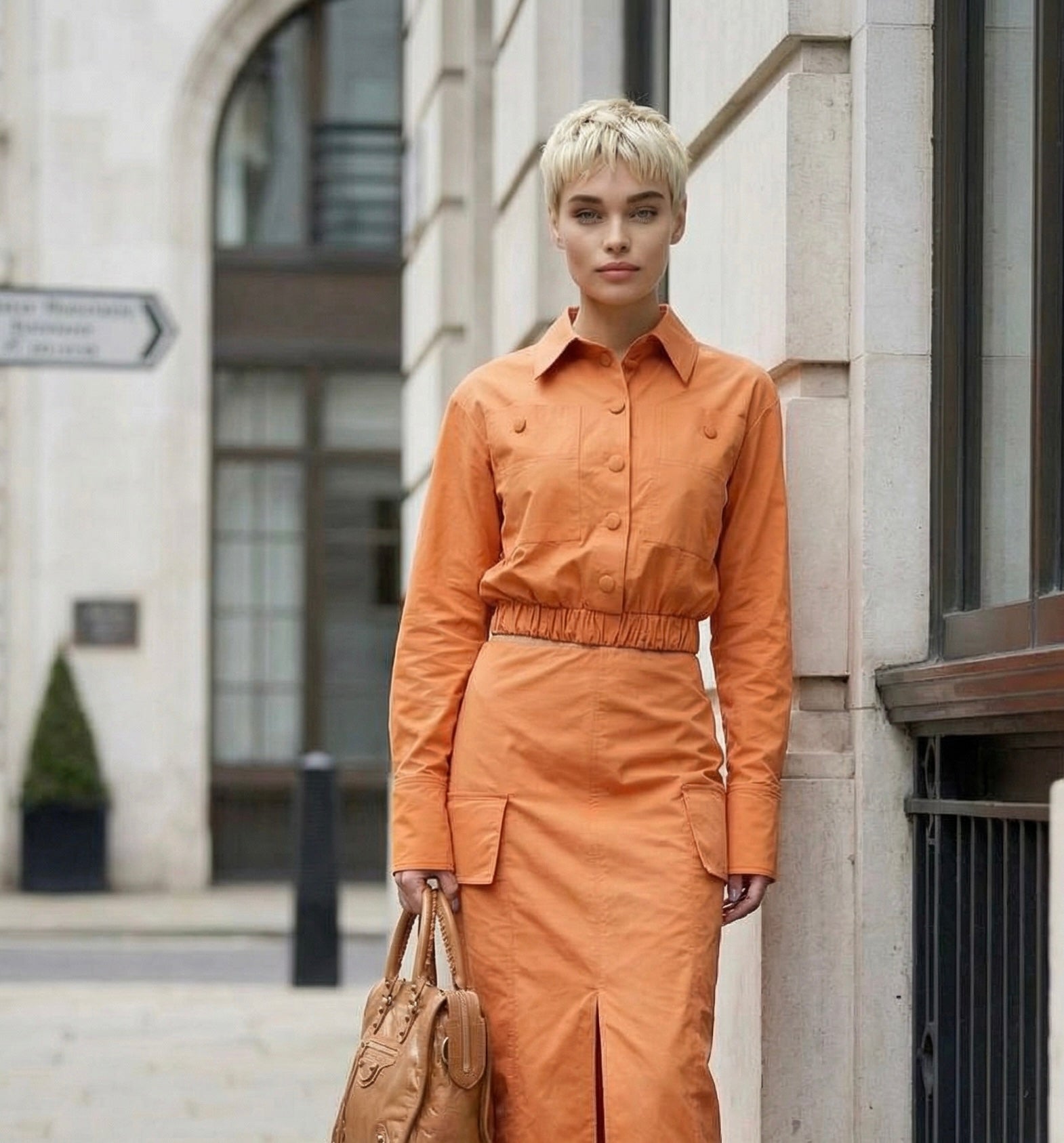 Yui haljina nadmašuje očekivanja sa svojim dizajnom koji spaja elegantni gornji deo jakne i usku suknju. Pojas, postavljen delimično napred i nazad, nije celim obimom spojen sa suknjom, što otkriva smeli izrez na struku. Ovaj neočekivani detalj daje haljini poseban šmek, čineći svaki pokret dinamičnim i impresivnim.